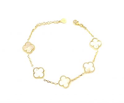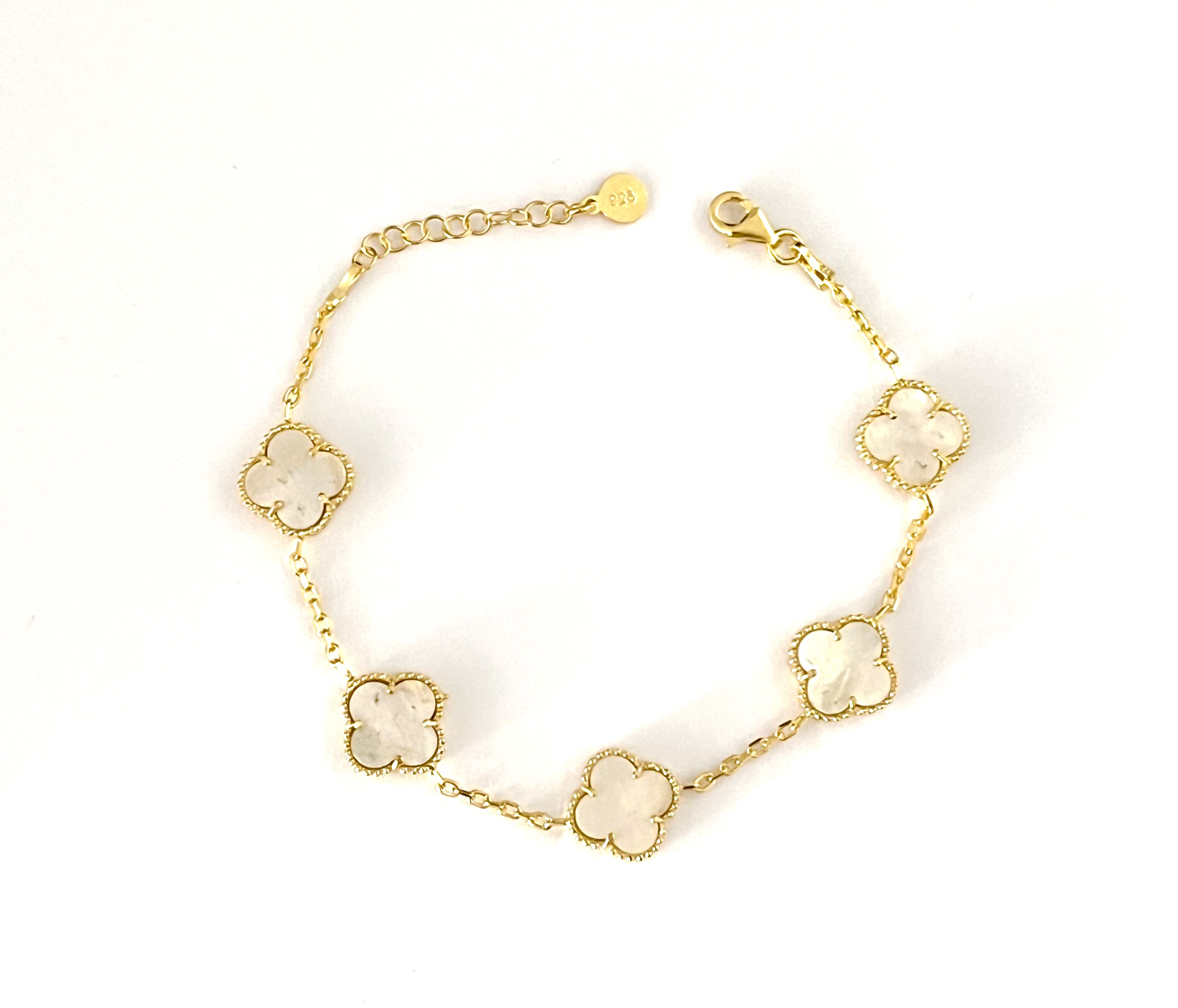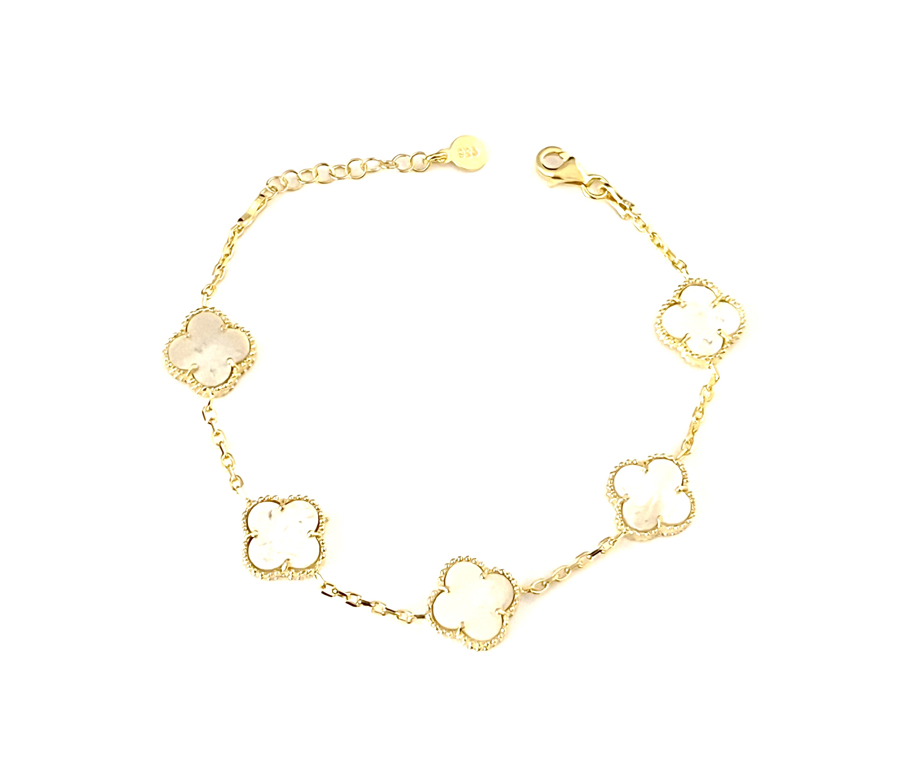 Srebrna narukvica sa privescima deteline od belog sedefa u pozlati