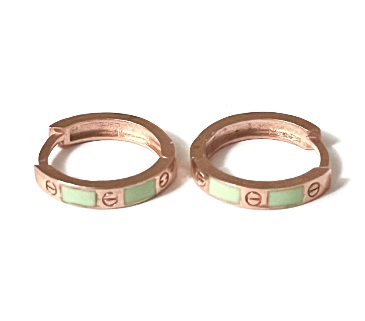 Model - srebrne alke u rose gold pozlati, sa radom i zelenim detaljima, prevučene rodijumom.