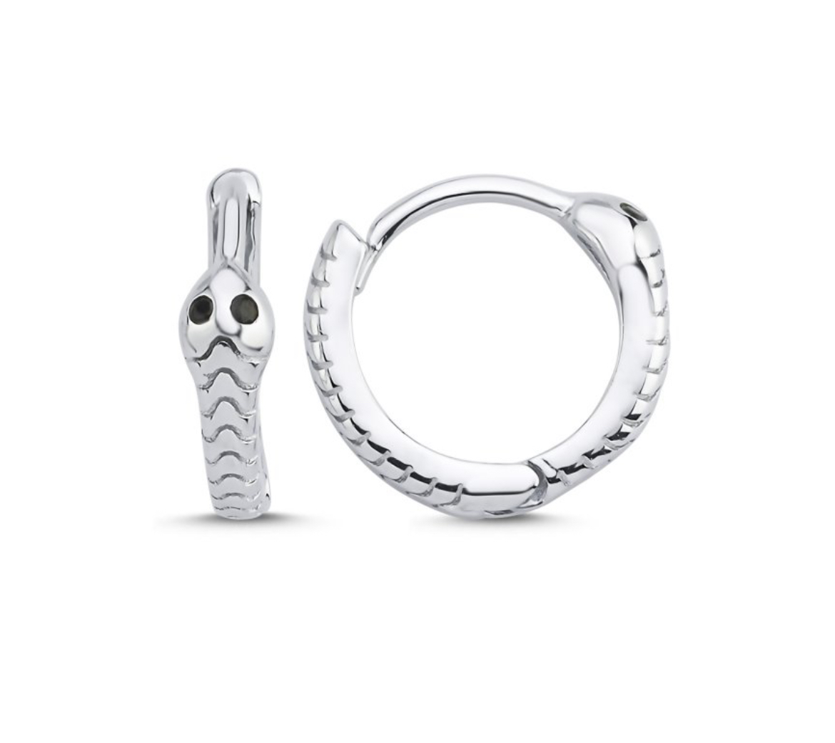 Srebrne minđuše oblika alki sa radom, kopča alka na klik, prevučene rodijumom (ne tamne).