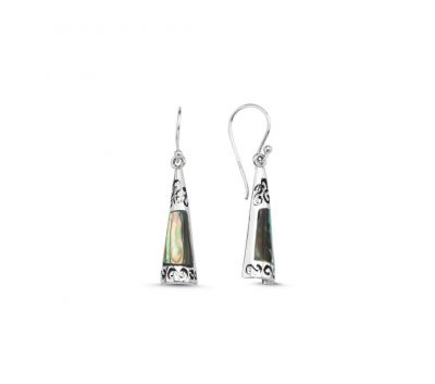 Srebrne minđuše sa sedefom i radom, kopča udica.