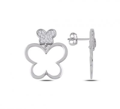 Srebrne minđuše u obliku leptira, kopča na šraf.