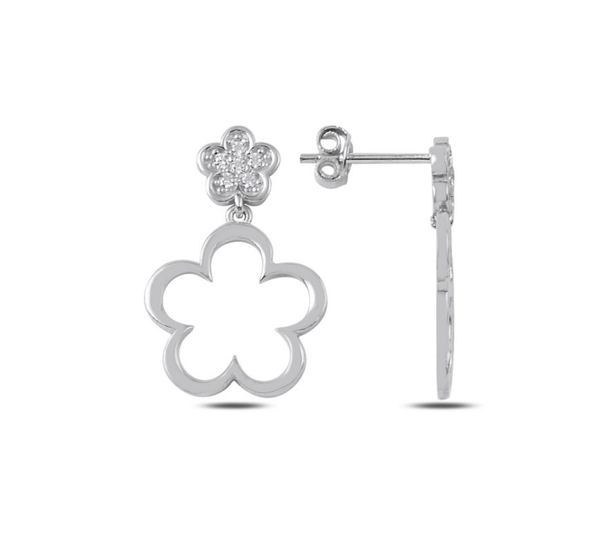 Srebrne minđuše u obliku cveta sa dodatkom cirkona, kopča na šraf.