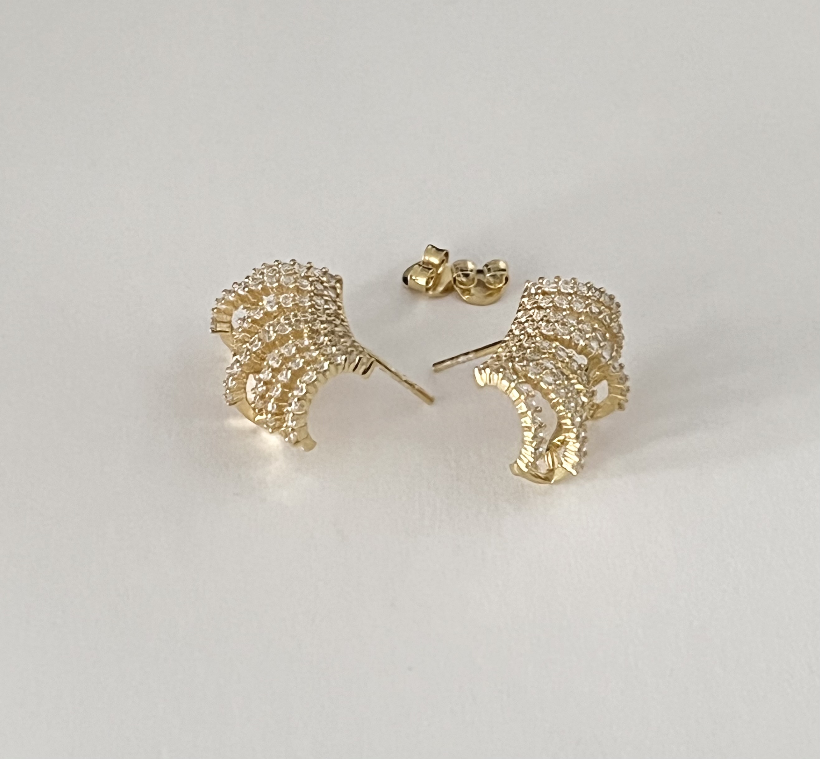 Srebrne minđuše sa radom i dodatkom cirkona, u pozlati, kopča šraf.