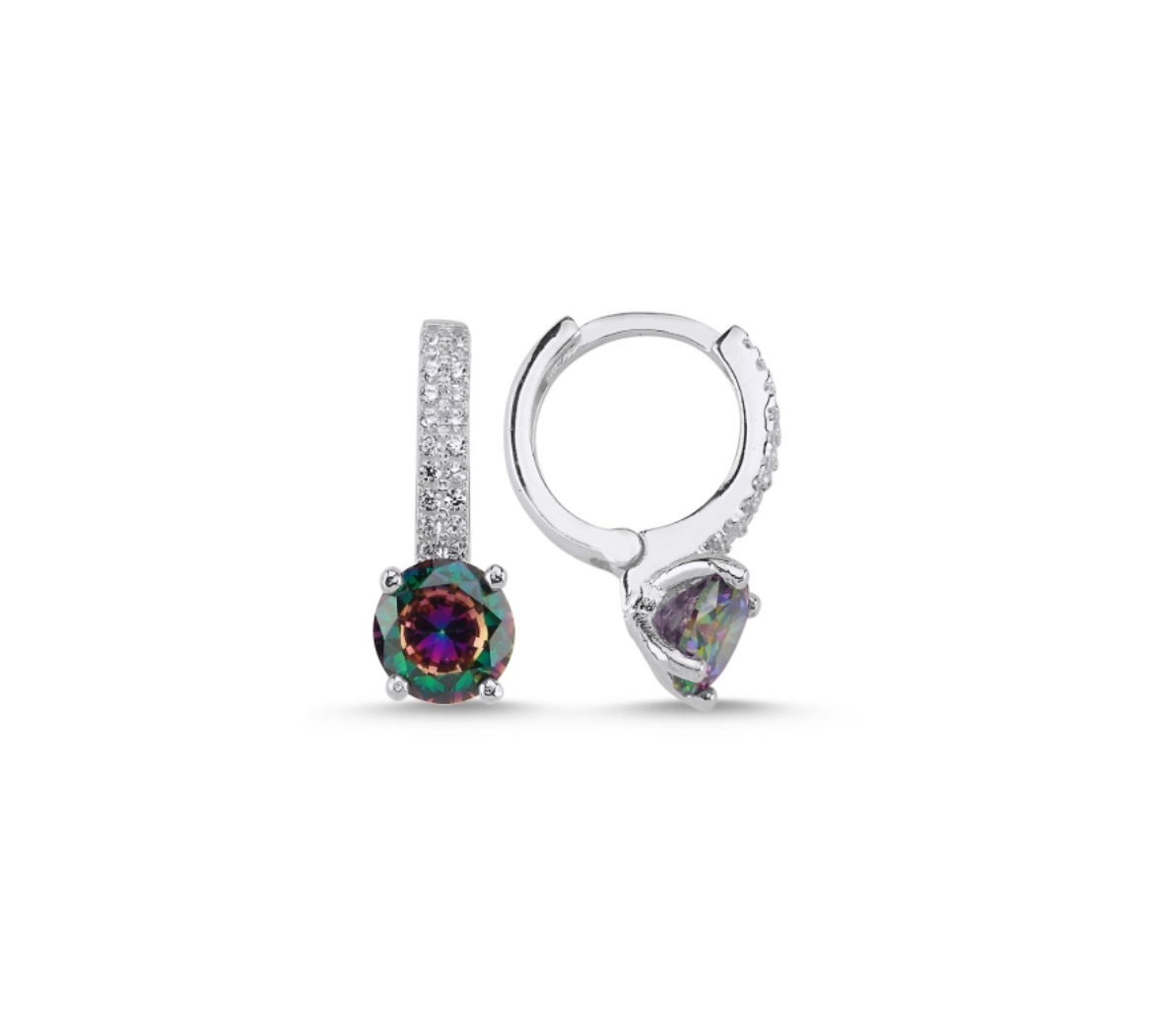 Srebrne minđuše sa topaz kristalom i cirkonima, na alkama, prevučene rodijumom (ne tamne).