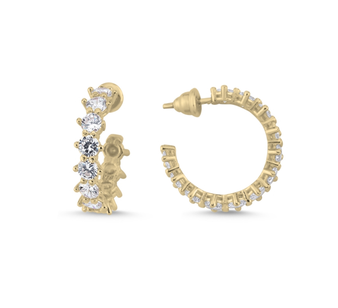 Srebrne polualke u pozlati (gold) od kristal cirkona, kopča šraf.