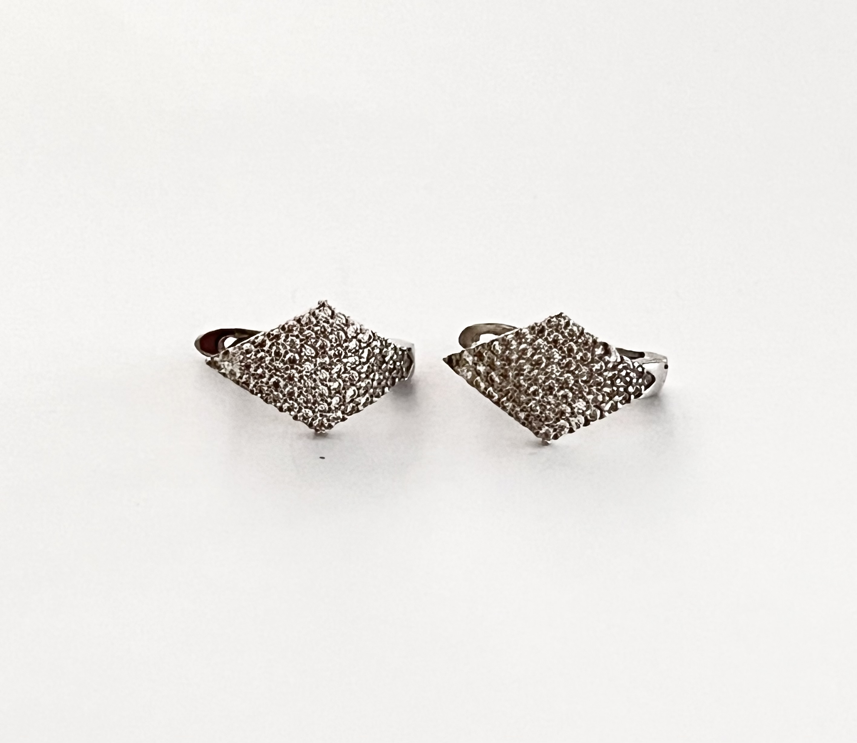 Srebrne minđuše romboidnog oblika, sa cirkonima, prevučene rodijumom (ne tamne)