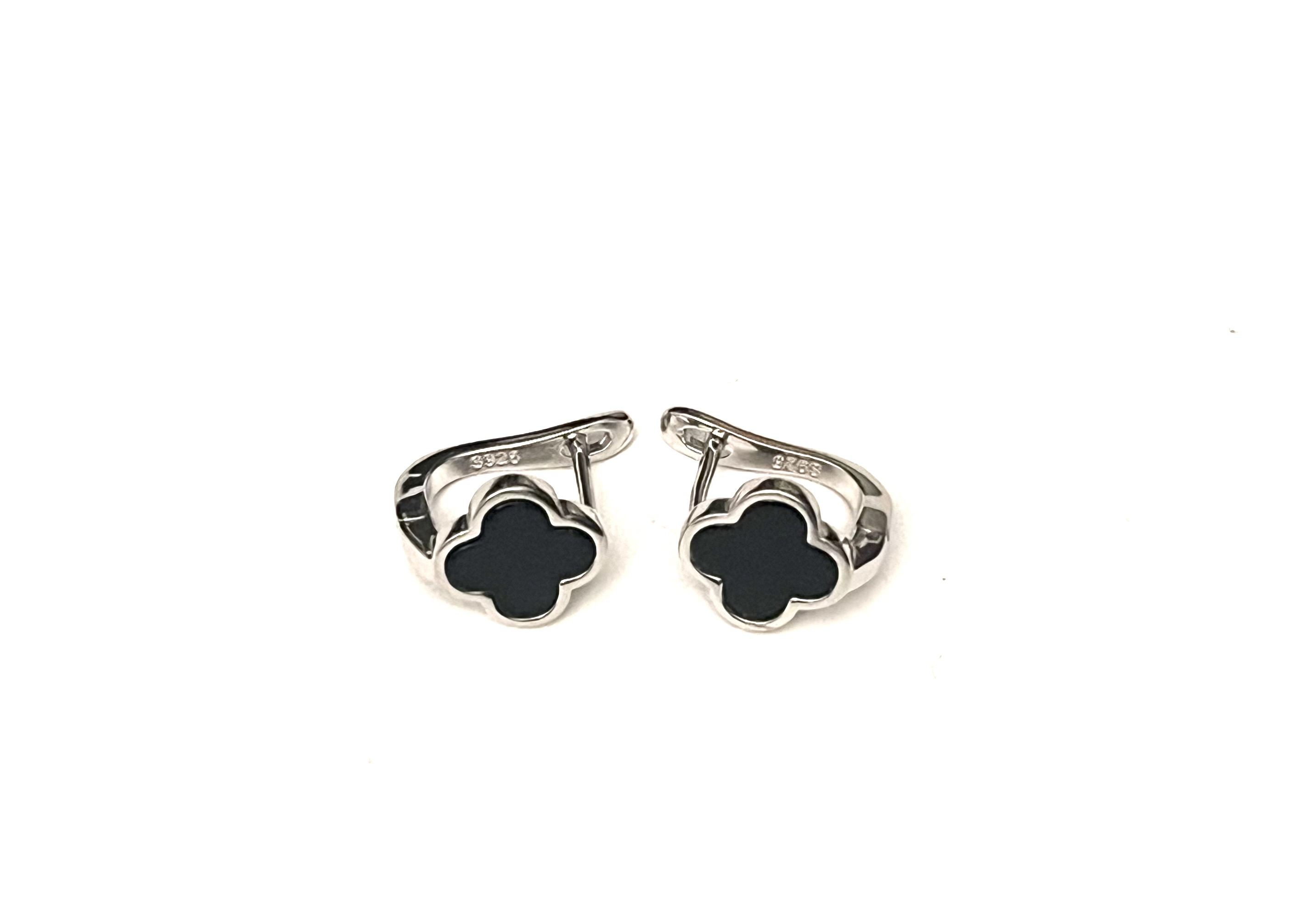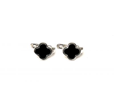 Srebrne minđuše sa priveskom crne deteline, prevučene rodijumom, kopča engleska.