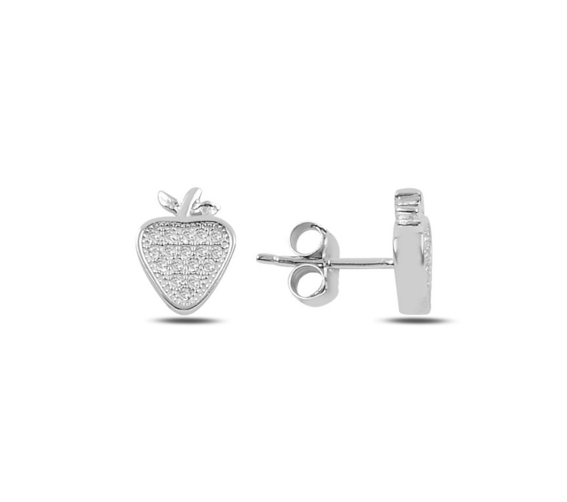 Srebrne minđuše oblika jagode, od cirkona, prevučena rodijumom (ne tamni), kopča šraf.