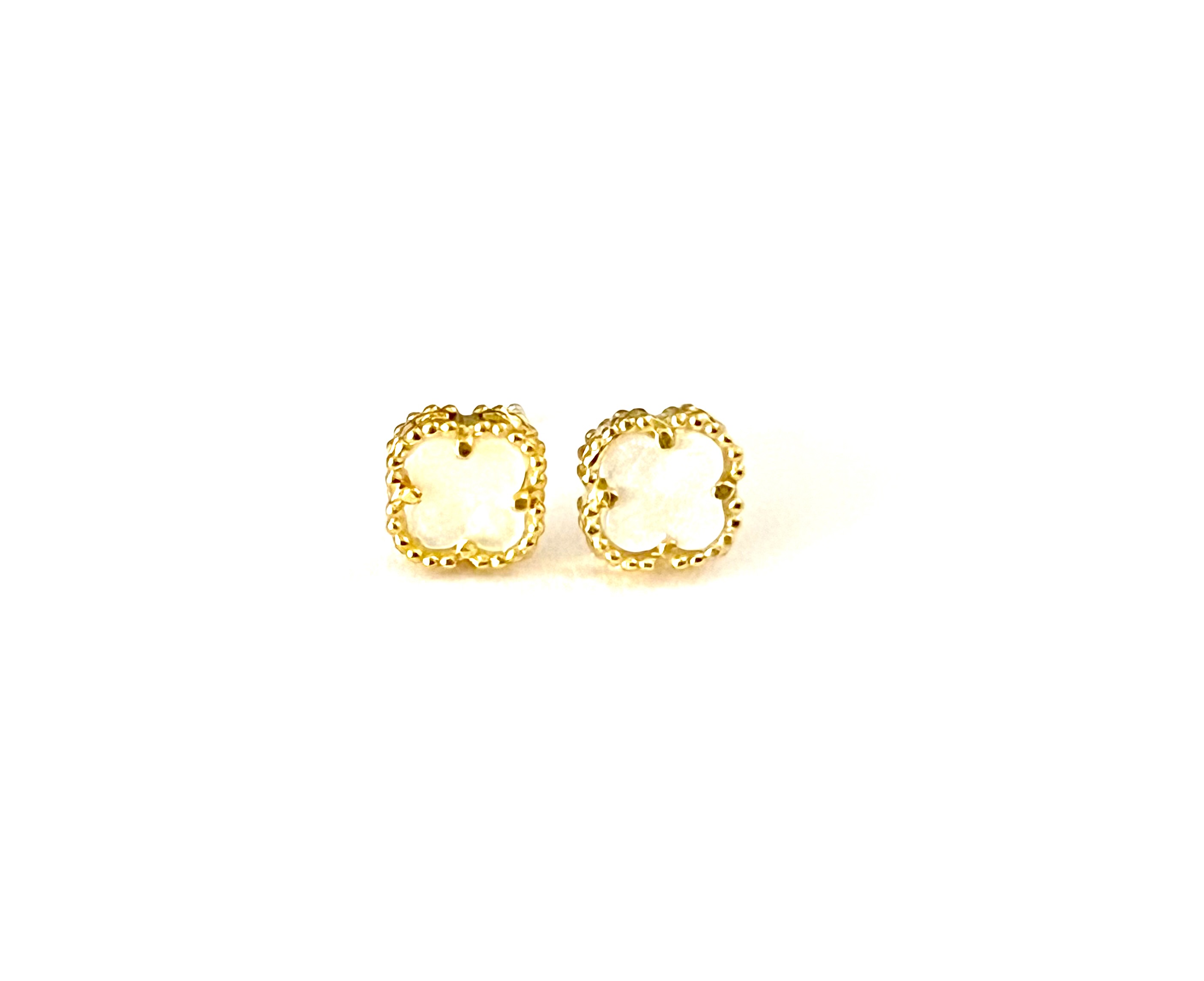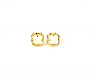 Srebrne minđuše deteline sa belim sedefom u pozlati.