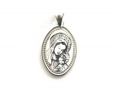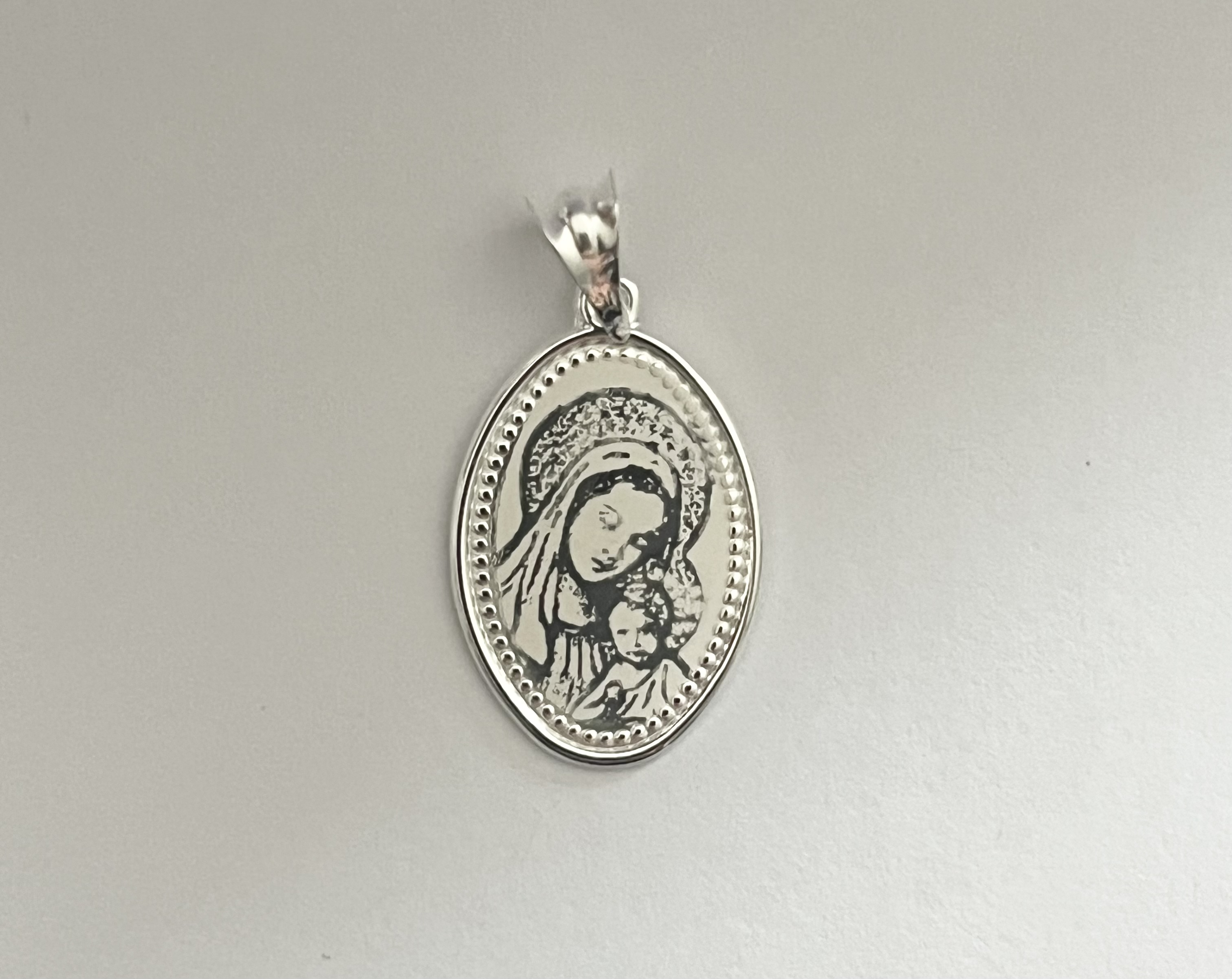 Srebrni privezak sa radom i likom Bogorodice, od čistog glat srebra.