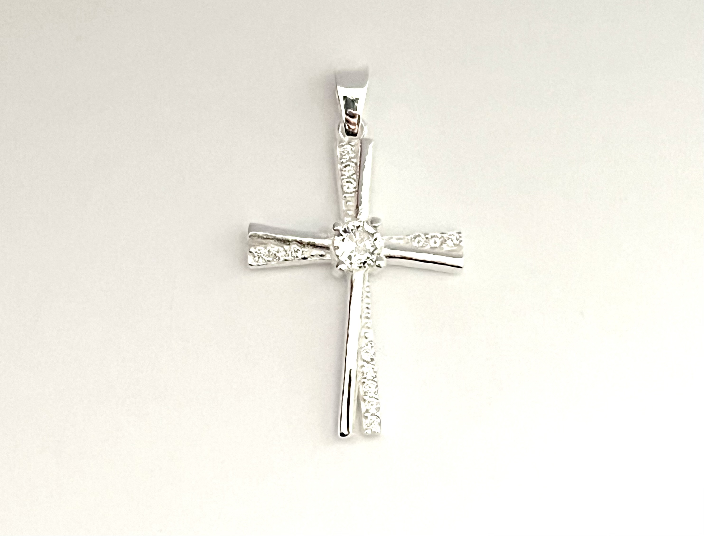 Srebrni privezak krst, sa radom i dodatkom cirkona, od čistog glat srebra.